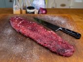 A long flat cut steak used in a variety of dishes including London Broil and as an alternative to the traditional Skirt steak in Fajitas. The fibres of the meat are very apparent and it is best to cut it across the grain to make the meat more tender.Out of stock -